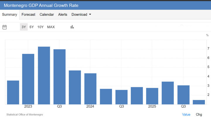 Populistička ekonomska politika stiže na naplatu: rast pao na 1,5% Najnoviji zvanični podaci Uprave za statistiku Monstat pokazuju da je bruto domaći proizvod Crne Gore u posljednjem kvartalu prošle godine